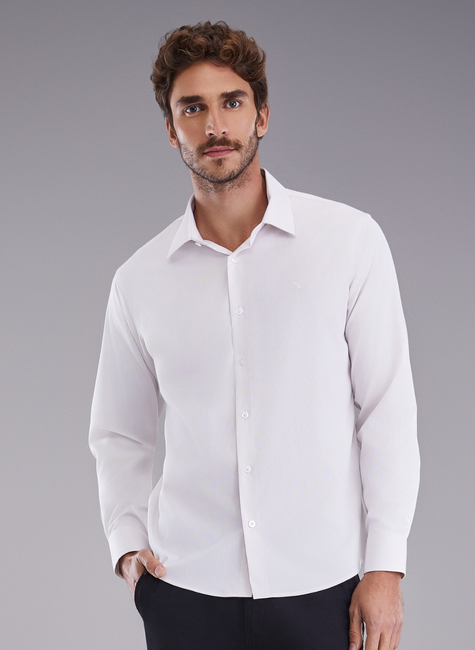 Essa camisa manga longa combina poliéster, fibra de bambu e elastano para oferecer conforto, flexibilidade e sustentabilidade. O tecido apresenta uma leve textura, adicionando um toque de sofisticação ao visual. As barbatanas personalizadas mantêm o colarinho impecável, enquanto a etiqueta decorativa na barra da vista acrescenta um detalhe exclusivo. Os botões personalizados na cor da peça complementam o design harmonioso. O bordado da logo da marca centralizado no peito esquerdo é um símbolo de qualidade. Com caimento perfeito e modelagem precisa, esta camisa é uma expressão de estilo refinado, completada por várias etiquetas e tags personalizados da marca.