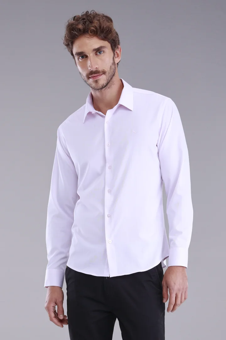 Essa camisa manga longa combina poliéster, fibra de bambu e elastano para oferecer conforto, flexibilidade e sustentabilidade. O tecido apresenta uma leve textura, adicionando um toque de sofisticação ao visual. As barbatanas personalizadas mantêm o colarinho impecável, enquanto a etiqueta decorativa na barra da vista acrescenta um detalhe exclusivo. Os botões personalizados na cor da peça complementam o design harmonioso. O bordado da logo da marca centralizado no peito esquerdo é um símbolo de qualidade. Com caimento perfeito e modelagem precisa, esta camisa é uma expressão de estilo refinado, completada por várias etiquetas e tags personalizados da marca.