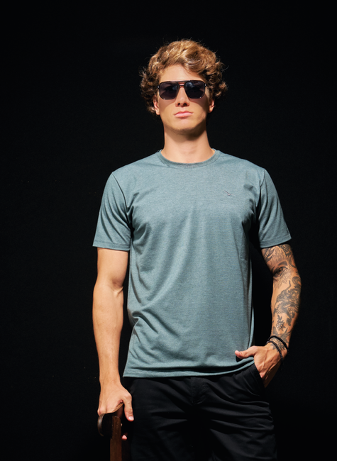 CAMISETA ESSENCIAL MESCLA 48%CO 48%PES 4%PUE MESCLA VERDE PETROLEO